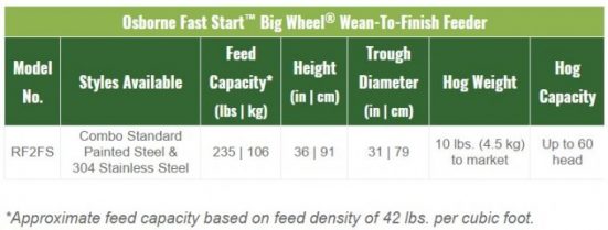 Pig Feeder Capacity Chart